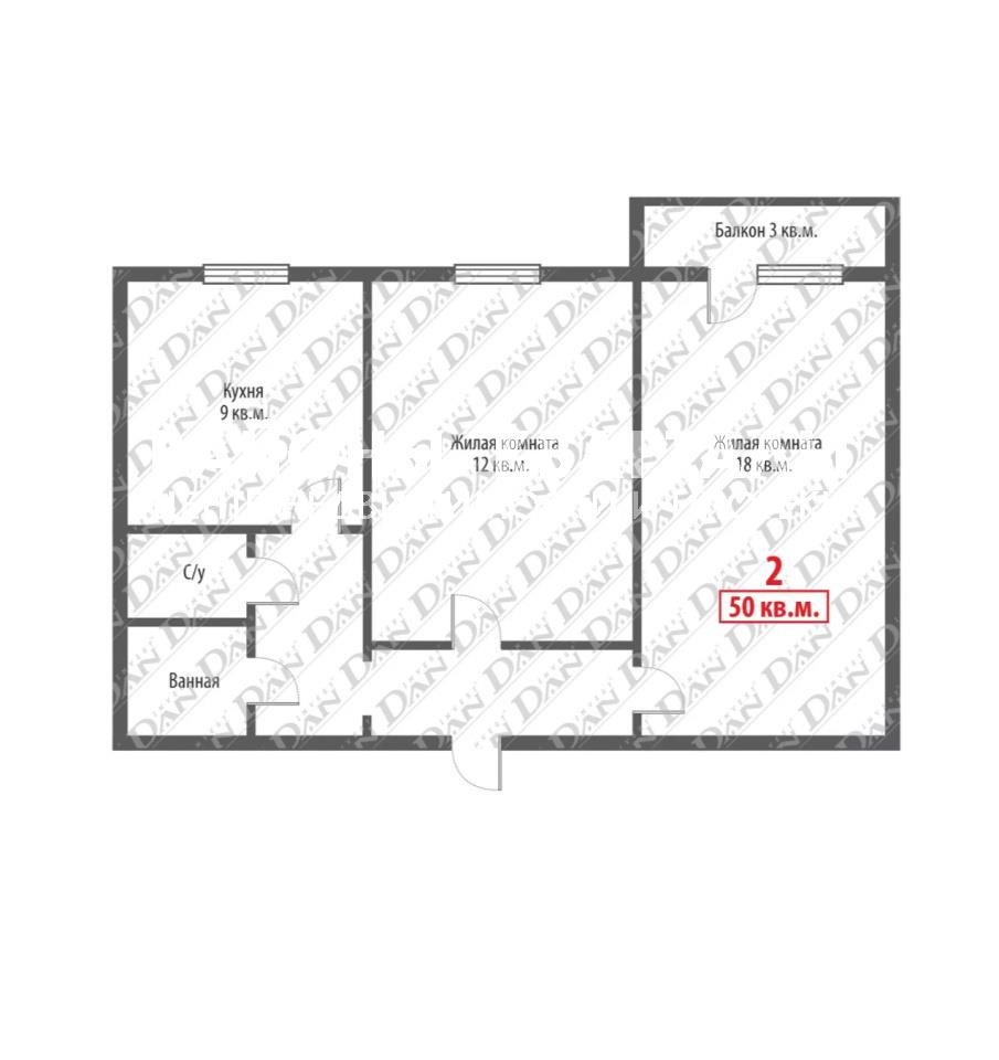 общая 50,7 м2, жилая 29 м2, кухни 9 м2 |